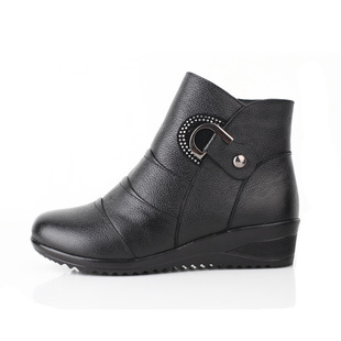 2013新款冬季真皮厚底坡跟媽媽棉鞋 中老年保暖金屬裝飾女靴女鞋