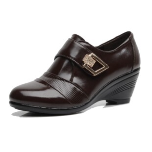 2013新款金屬裝飾中老年深口女單鞋 媽媽工作休閑真皮坡跟高跟鞋