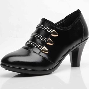 2013年秋季新款真皮高跟粗跟淺口低幫媽媽工作鞋 水鉆中老年女鞋