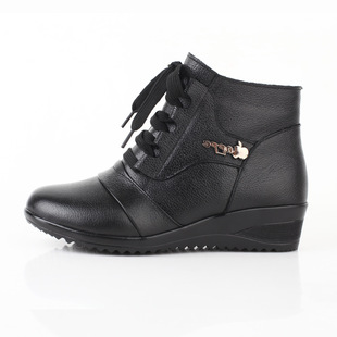 2013年秋冬新款加厚保暖真皮媽媽鞋 時尚休閑中年坡跟工作女鞋