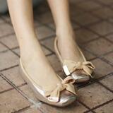 圓頭漆皮蝴蝶結套腳可愛平底