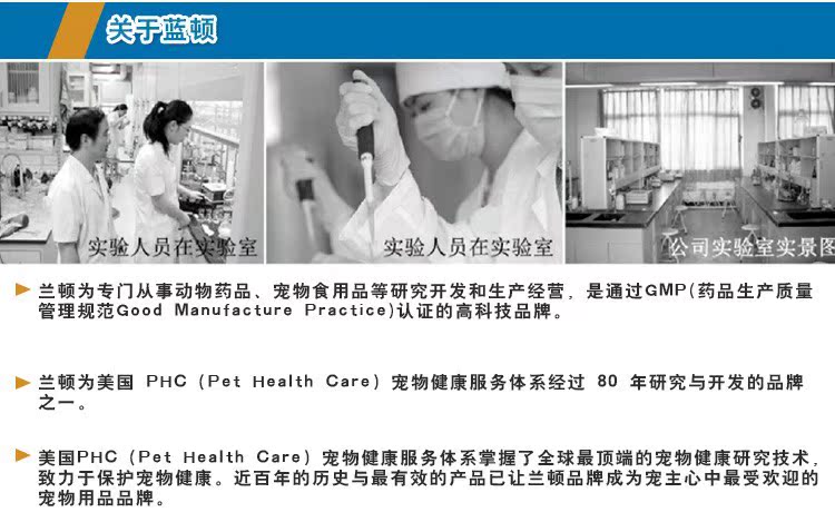 蘭頓為專門從事動物藥品、寵物食用品等研究開發和生產經營,是通過GMP(藥品生產質量管理規范 Good Manufacture Practice)認證的高科技品牌。
