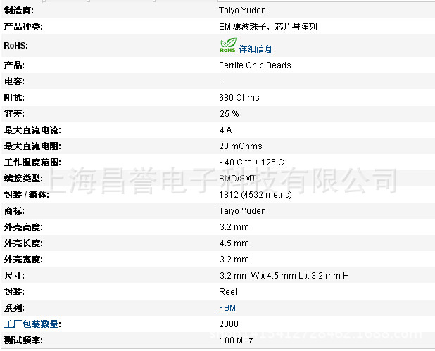 供應Taiyo YudenEMI濾波珠子、芯片與陣列FBMH4532HM681-T