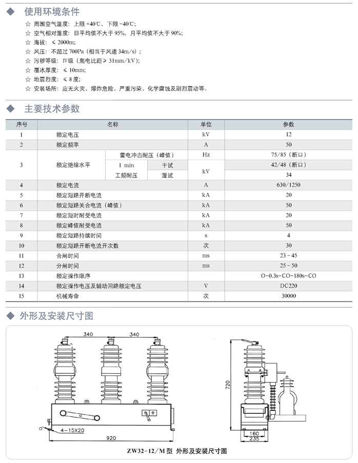 ..............................................................................................................................................ZW32-12M隨著計算機技術、傳感器技術和網絡通信技術的發展以及電力系統中配網運行要求的提高,功能單一的一次設備在配電網絡的應用中日益顯示出其不便之處,因而從配電網系統的全局著眼,開發基于節點(終端)的高壓永磁真空斷路器已勢在必行?;谶@一思想,樂清市寶高電器有限公司開發研制了ZW32-12型高壓永磁真空斷路器,它集微處理機技術、現代網絡通訊技術和新型開關制造技術于一體,廣泛適用于城市電網作為分斷或聯絡開關,或用于農網配電系統戶外變電站作為出線開關,可有效完成傳統的重合器的工作,分、合負荷電流和短路電流。裝置內部所配置的測量保護控制和通訊功能可充分滿足配電自動化系統要求。