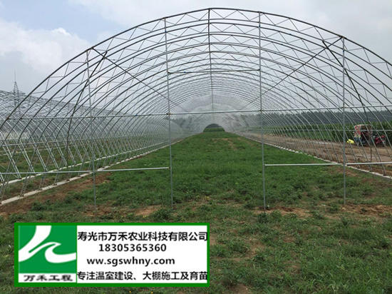全鋼架拱棚采用熱鍍鍍鋅管鋼架組裝式結構,主桁架間距在0.8-1.2m左右,跨度一般在6-12m之 間,高度在3.5m左右,建造安裝方便。棚內由于無立柱支撐,大大提高了棚內采光效果。更多產品信息請關注壽光市萬禾農業科技有限公司