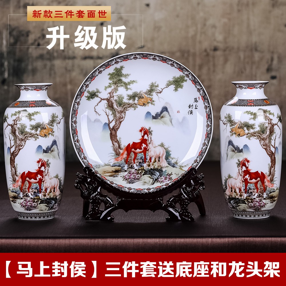 粉彩花瓶三件套傳承千年的文化,向您展示與眾不同的美。結合現代精細化制瓷工藝,瓷質光潔亮澤、圖案清晰;形色不一,別具風格。陶瓷花瓶至今都在家居裝飾中占據著重要的地位,這些具有著藝術意味的粉彩花瓶三件套不僅可以渲染家居生活的室內景色,更可以體現主人的修養與品位。除此之外,也伴有瓶字與平諧音,故又有著放在家中為家人帶來平安、富貴和諧的生活寓意。粉彩花瓶三件套集裝飾性、觀賞性、藝術性、功能性為一體,全面裝點家居生活。粉彩花瓶三件套瓶口平滑規整,釉色如破土的嫩芽一般伸展開來;清晰均勻的花紋遍布在器面的每一個角落,精細有致,紋路繁密;瓶底印有景德鎮制,景德鎮原產地發貨。粉彩花瓶三件套薄而細膩,在燈光的照射下晶瑩、白皙、透亮。