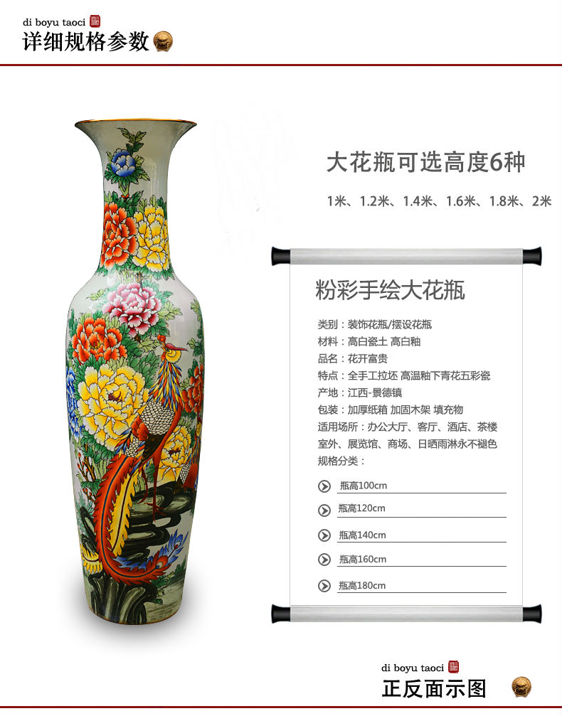 落地大花瓶是一種陶瓷工藝品,用它來裝扮空間也成為現在的流行趨勢。落地大花瓶外表精美,且表面光滑,摸上去非常有質感,所以不管是您自己用還是送人,落地大花瓶都會給人一種高端大氣上檔次的感覺。景德鎮市合元陶瓷有限公司就是專門定制落地大花瓶的廠家,規格有1米-3.6米,款式多樣,圖案豐富。落地大花瓶有青花、粉彩、色釉等圖案,采用純手工拉坯制作,可私人訂制?。?!