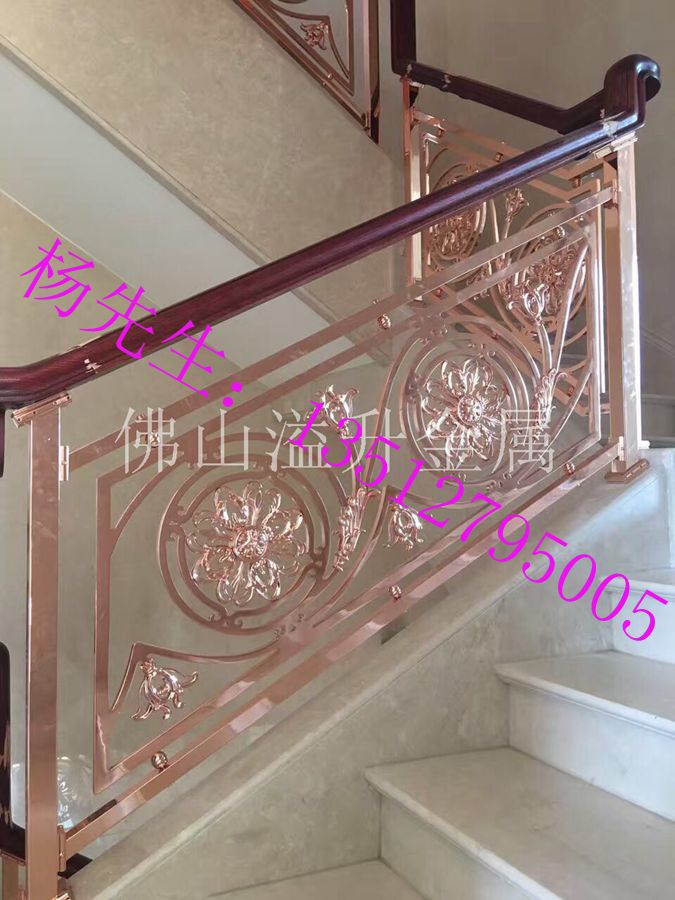 專業精雕鋁藝鏤空花格樓梯護欄訂做廠家弧形鋁樓梯護欄廠家韓式風格樓梯護欄設計定做的品質優質的生活享受。精雕鋁藝鏤空花格樓梯護欄是目前市場上鐵藝的換代產品、鋁藝它具備了鐵藝的優美造型、獨特的結構。鋁合金材質,優美的造型,柔和的色調、西洋化的風格,使得鋁藝、比鐵藝、和不銹鋼、在人們心中展現出一種更加的完美、高貴、樸實、和典雅的一種靜態的美感。金屬本身有自然光澤,加上現代高科技著色技術,保持原本的金屬質感同時加上品味的設計,香檳金、玫瑰金、K金(鍍黃金)、鈦金、紅古銅、青古銅等多樣性的顏色選擇,鋁藝樓梯,使產品更加豐富。氣場強大,實用性強,尤其是品質一流,讓消費者可以隨心地進行選擇。當然從實用性來看,鋁藝樓梯廠家,歐式鋁藝樓梯護欄報價,選擇溢升樓梯護欄,鋁藝樓梯價格,還要和家裝的風格、其它裝飾品顏色等進行搭配,青古銅鋁藝樓梯護欄,金屬色的多樣性,與現代時尚和復古等不同風格進行搭配,效果都很不錯。