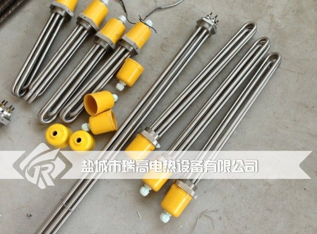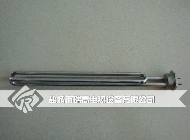 4、安裝:容器開孔焊接母牙圈,電熱管螺牙上加密封墊對接擰緊。