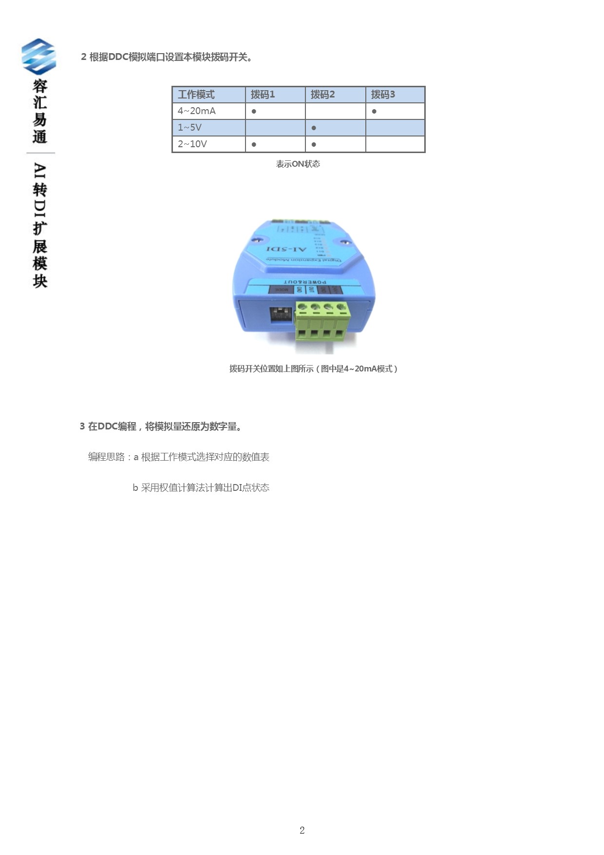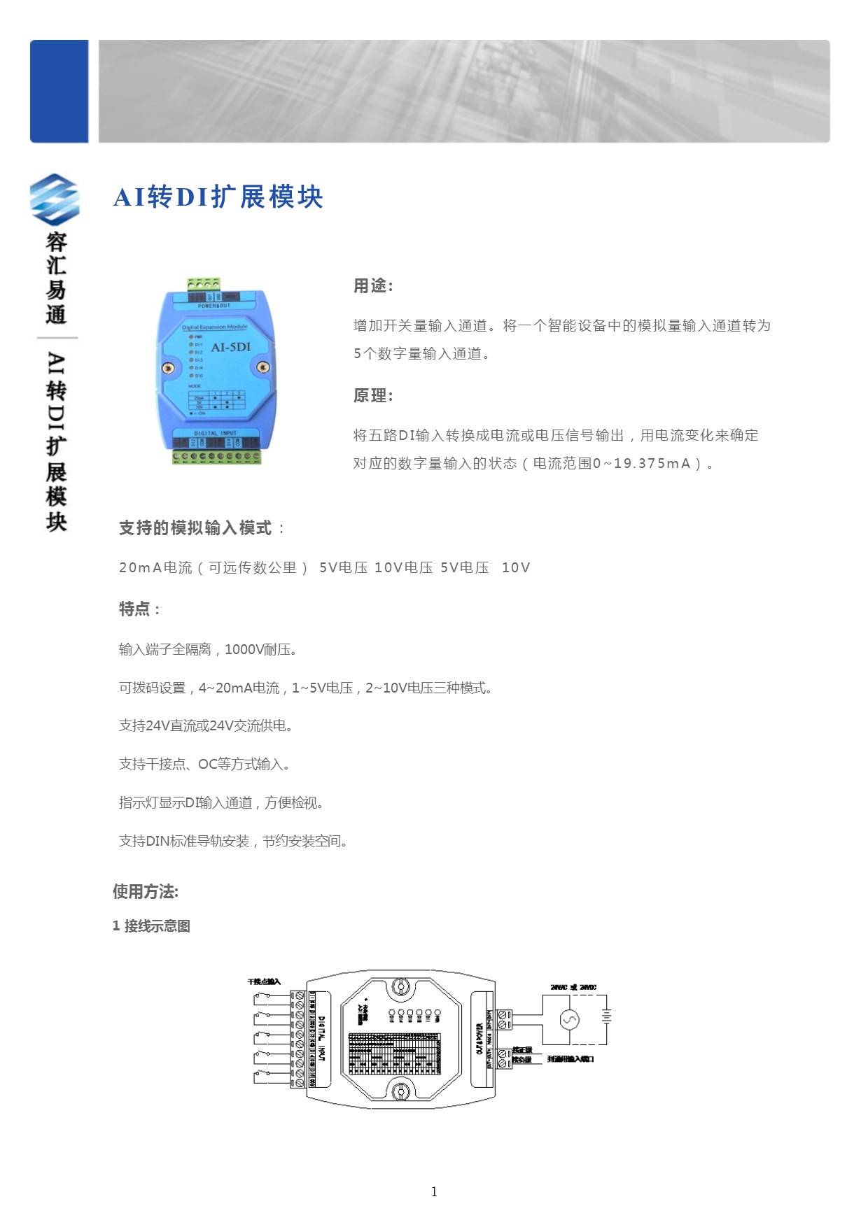概述用途: 增加開關量輸入通道。將一個智能設備中的模擬量輸入通道轉為5個數字量輸入通道。