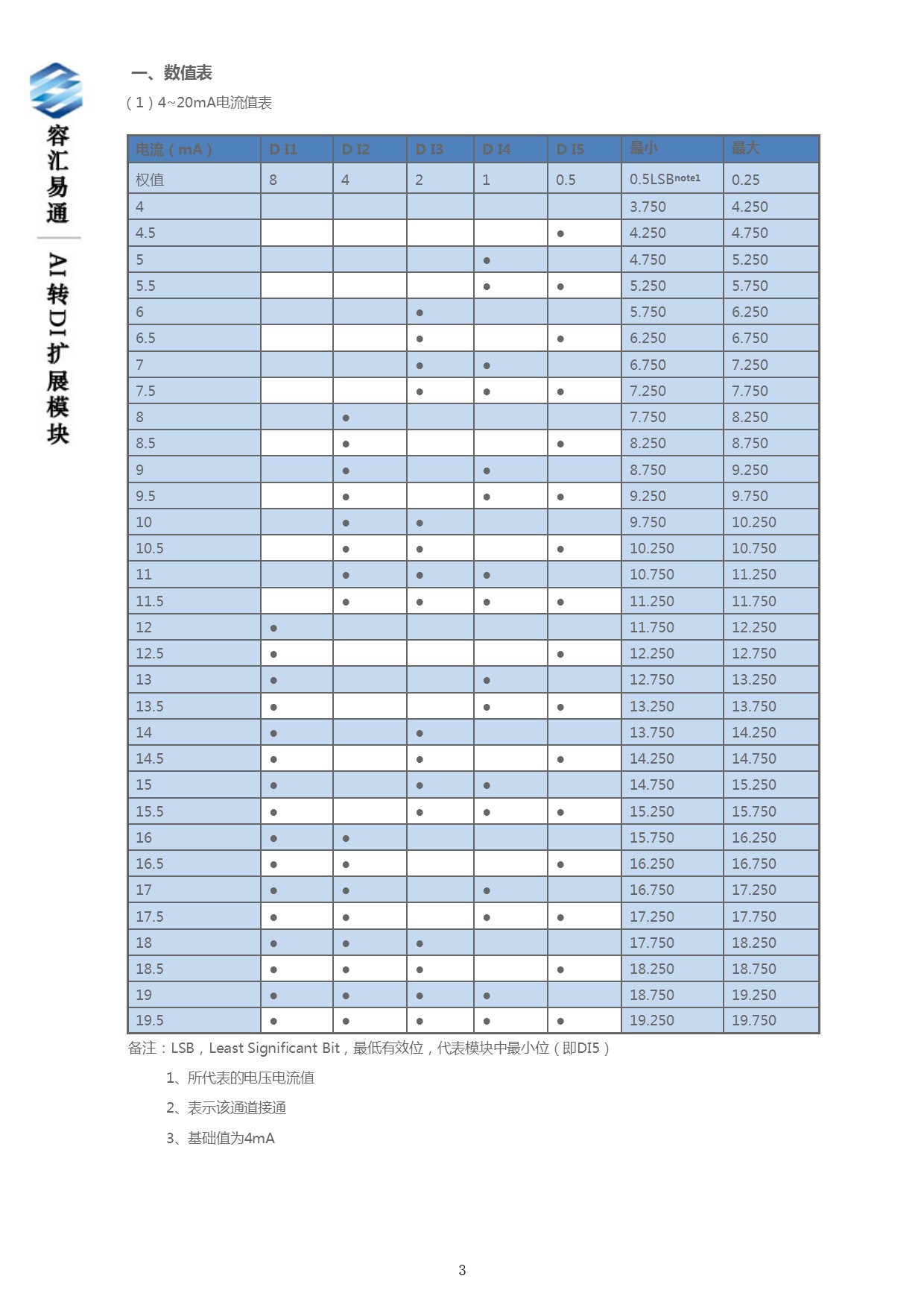 原理: 將五路DI輸入轉換成電流或電壓信號輸出,用電流變化來確定對應的數字量輸入的狀態(電流范圍0~19.375mA)。
